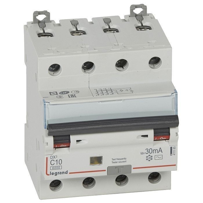 Дифавтомат Legrand DX³ 4P 10А (C) 10кА 30мА (AC), 411185